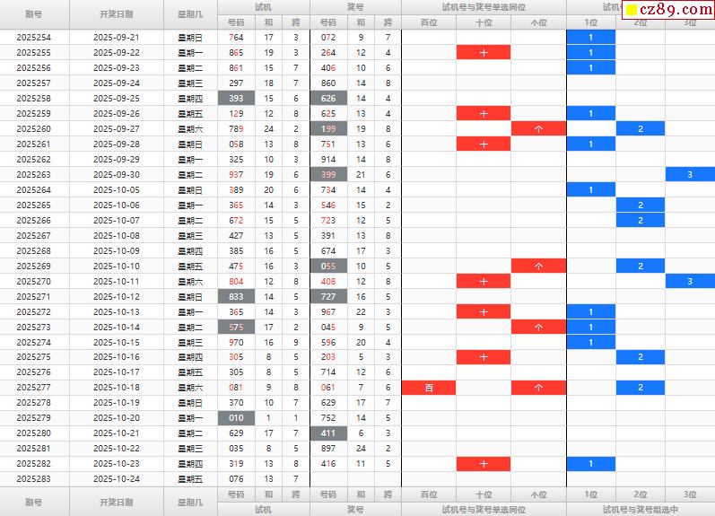 首页 > 福彩3D预测 > 25年283期福彩3D试机号走势图表分析